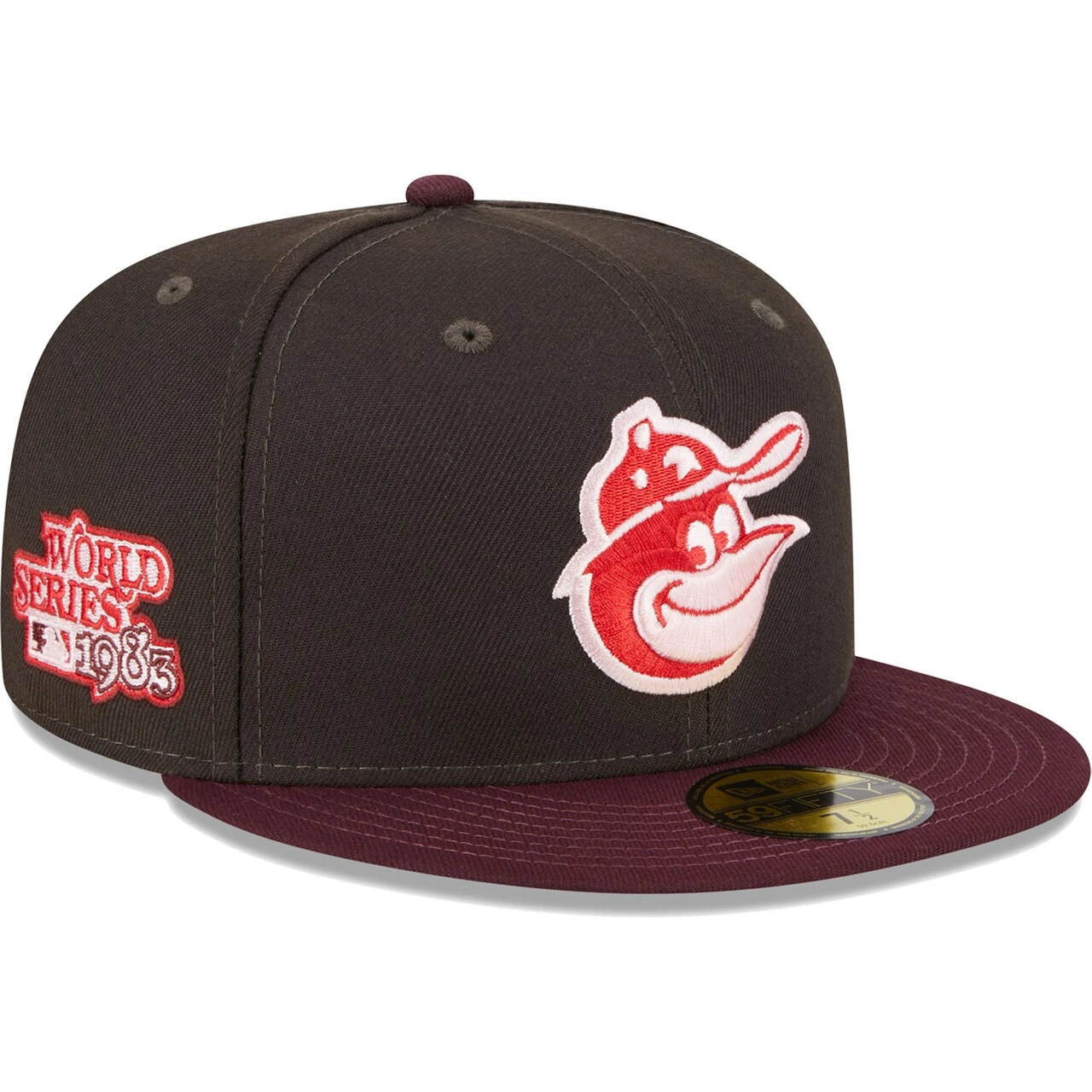 Add a tasteful piece of Baltimore Orioles gear to your collection by picking up this Chocolate Strawberry 59FIFTY hat from New Era. It features the team’s logo embroidered on the front and a celebratory patch on the right side. The red undervisor on this fitted cap adds a pop of color, giving it a unique look that is perfect to go along with any Baltimore Orioles game day outfit.